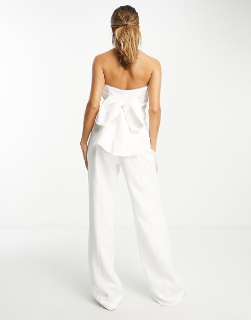 Band Of Stars - Combinaison ajustée de qualité supérieure avec encolure bustier et nœud dans le dos - Blanc