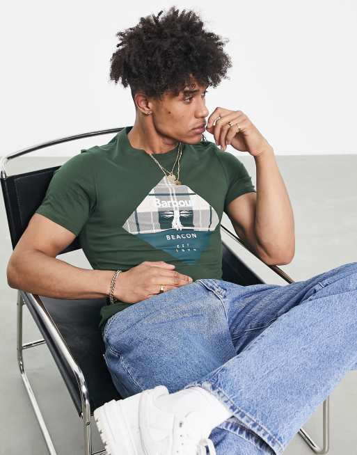 Barbour Beacon - Becker - T-shirt avec grand logo losange à motif écossais - Vert