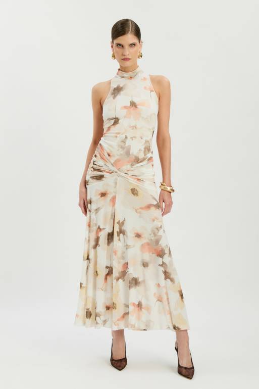 Bardot - Leanna - Robe mi-longue en tulle à fleurs - Ivoire
