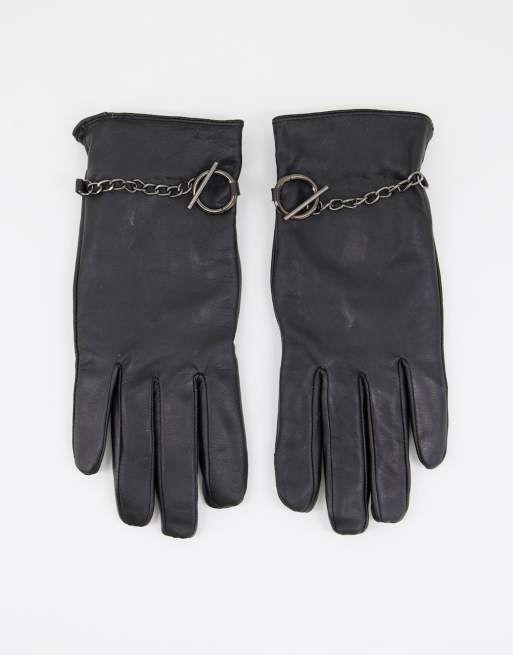 Barney's Originals - Gants en cuir véritable avec chaînette - Noir