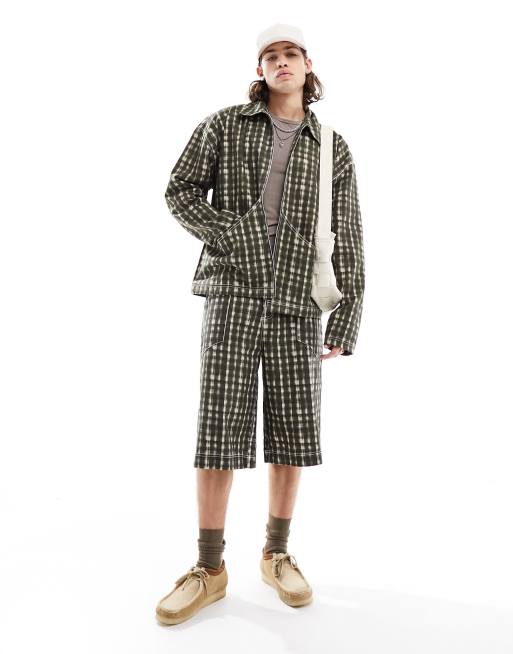 Basic Pleasure Mode - Veste d'ensemble style skateur à carreaux avec détail au dos - Vert