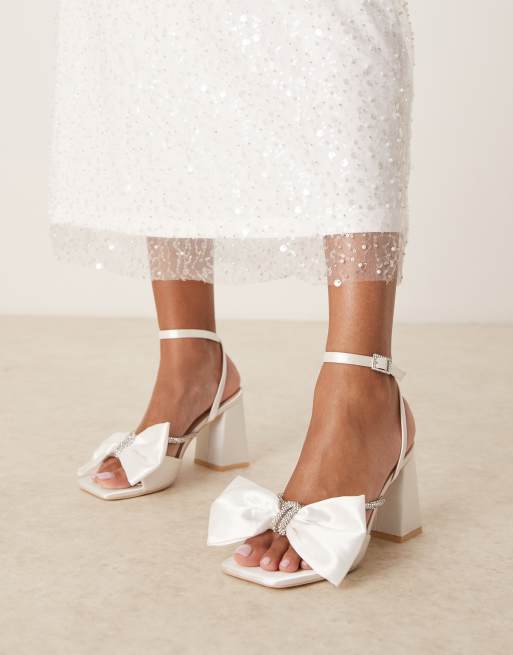 Be Mine - Tisca - Sandales en satin avec haut talon carré et nœud - Ivoire