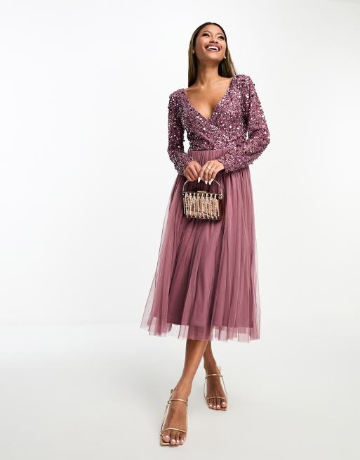 Beauut - L'invitée - Robe mi-longue à manches longues avec ornements sur l'ensemble - Mauve