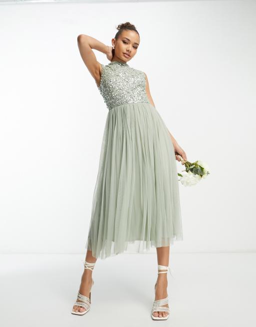 Beauut - Robe longue 2 en 1 ornementée délicate pour demoiselle d'honneur avec jupe ample en tulle - Sauge