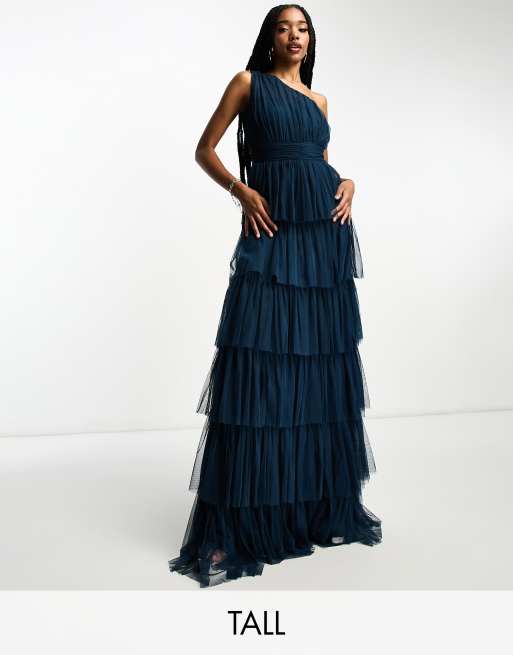 Beauut Tall - L'invitée - Robe longue asymétrique à volants - Bleu marine