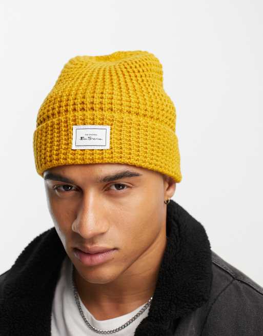 Ben Sherman - Bonnet en maille gaufrée - Moutarde