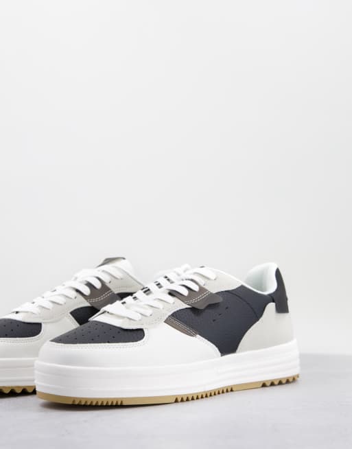 Bershka - Baskets à empiècements contrastants - Blanc et bleu marine