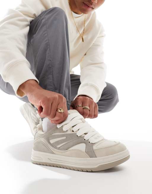 Bershka - Baskets chunky à empiècements contrastants - Beige