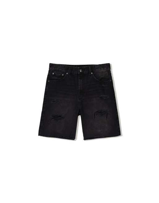 Bershka - Bermuda en jean avec déchirures - Noir