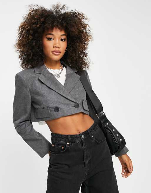Bershka - Blazer d'ensemble court - Gris foncé