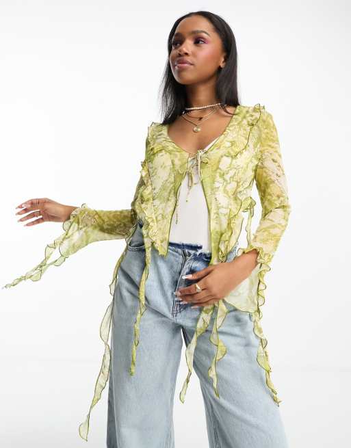 Bershka - Blouse nouée devant à volants - Peau de serpent