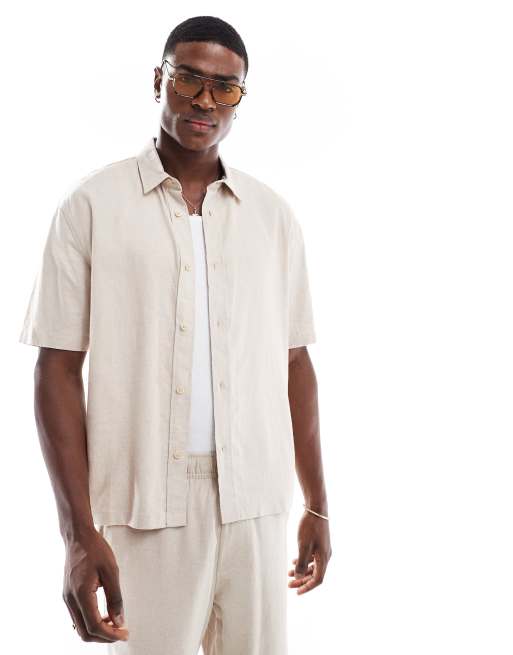 Bershka - Chemise à manches courtes en lin mélangé - Beige