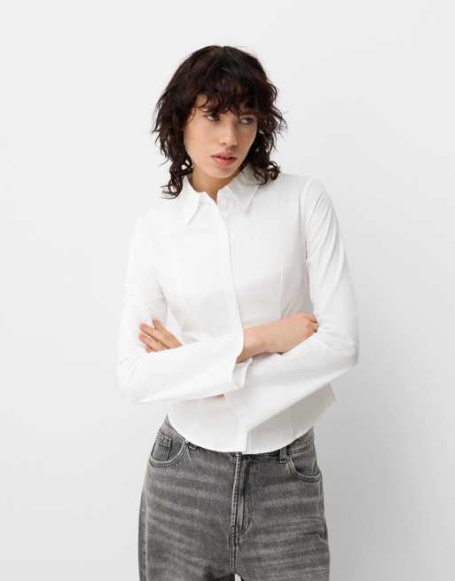 Bershka - Chemise ajustée à manches évasées - Blanc