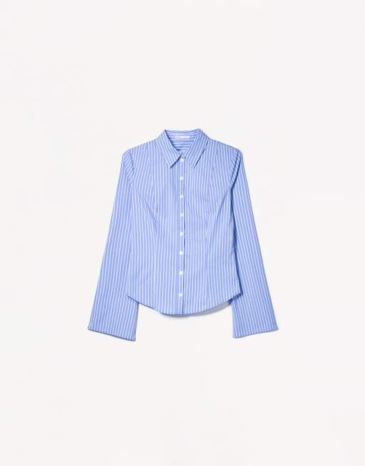 Bershka - Chemise ajustée à manches évasées - Bleu denim