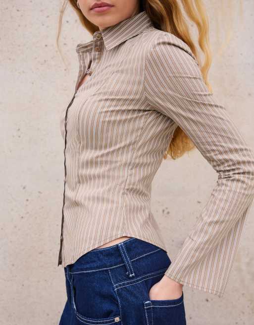 Bershka - Chemise cintrée à manches évasées - Camel