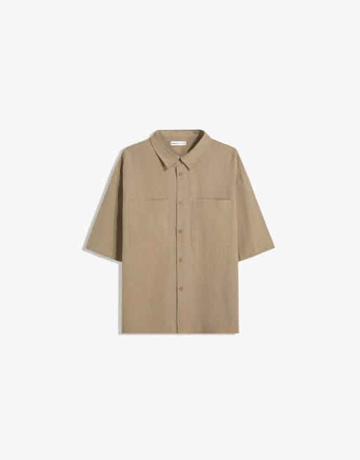Bershka - Chemise coupe carrée à manches courtes - Beige