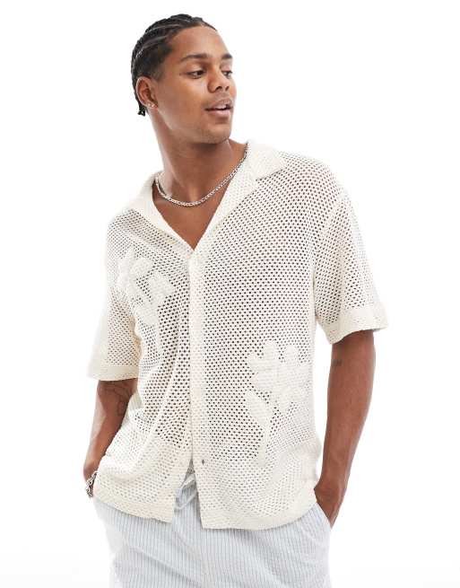 Bershka - Chemise crochetée avec fleurs estampées - Écru