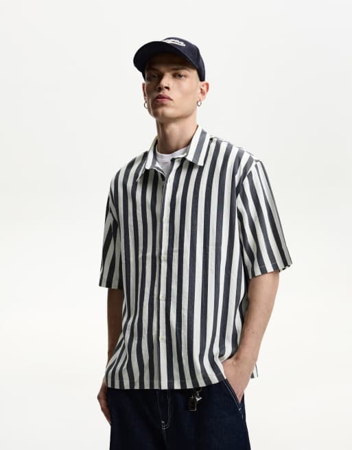 Bershka - Chemise décontractée à manches courtes - Gris et noir