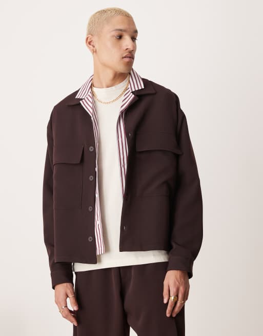 Bershka - Chemise d'ensemble de qualité supérieure à manches longues - Bordeaux