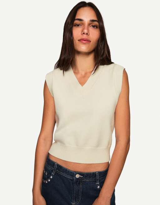 Bershka - Débardeur à col en V - Écru