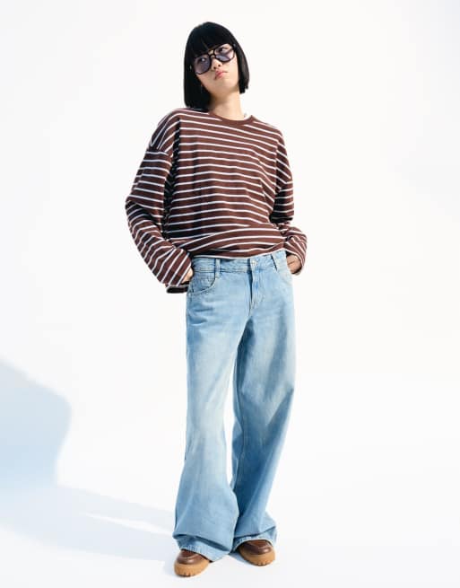 Bershka - Jean ample à taille basse - Bleu moyen