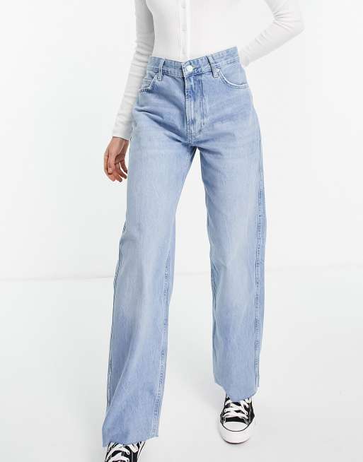 Bershka - Jean baggy à ourlets bruts - Bleu