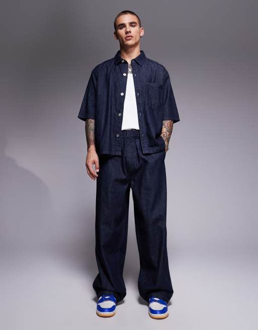 Bershka - Jean baggy avec liens à la taille - Bleu indigo