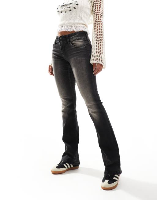 Bershka - Jean bootcut à taille basse - Noir délavé effet sali