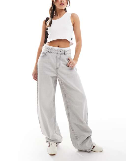 Bershka - Jean bouffant ample - Gris clair
