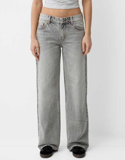 Bershka - Jean boyfriend - Gris clair