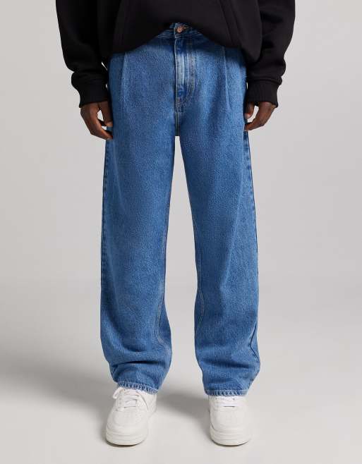 Bershka - Jean large plissé - Bleu