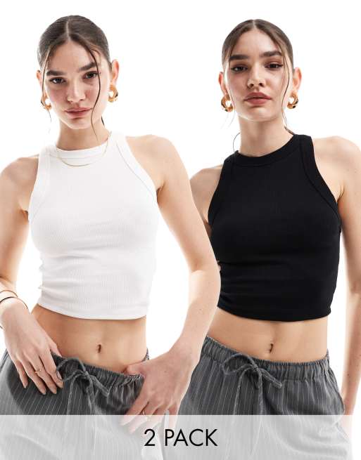 Bershka - Lot de 2 tops nervurés à dos nageur - Noir et blanc