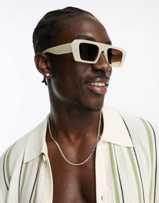 Bershka - Lunettes de soleil carrées - Blanc