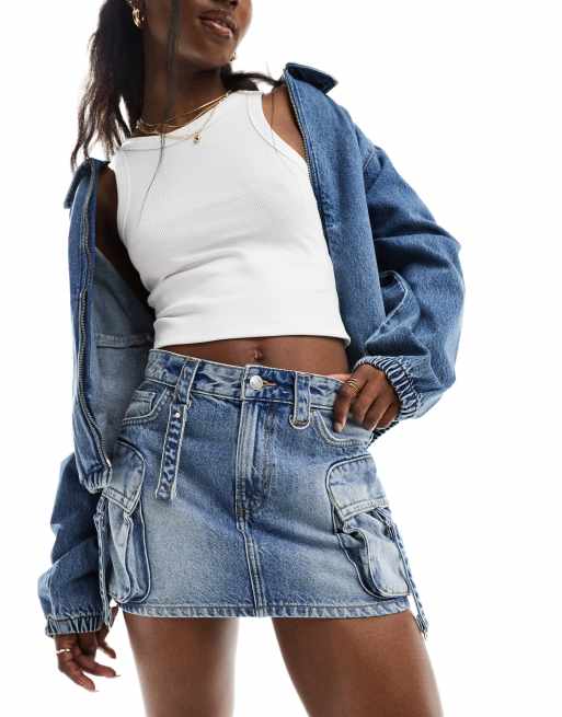 Bershka - Mini-jupe cargo en jean - Bleu moyen