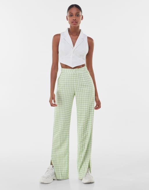 Bershka - Pantalon à ourlet fendu - Vichy vert