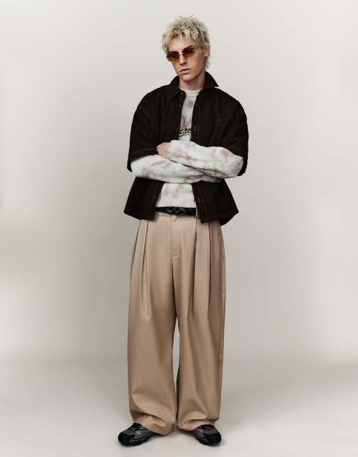 Bershka - Pantalon ajusté ultra baggy - Beige