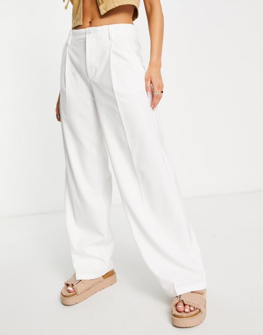 Bershka - Pantalon ample ajusté à taille basse - Blanc