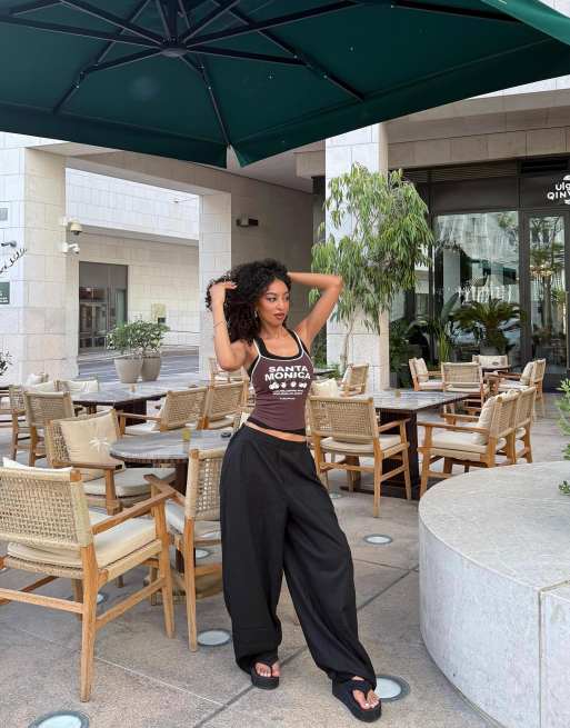 Bershka - Pantalon bouffant en lin mélangé à pinces - Noir