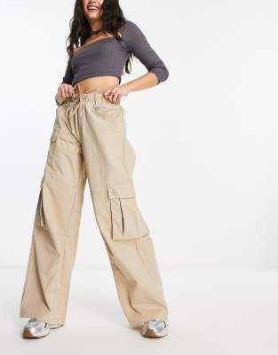 Bershka - Pantalon cargo ample en nylon avec taille à cordon de serrage - Fauve
