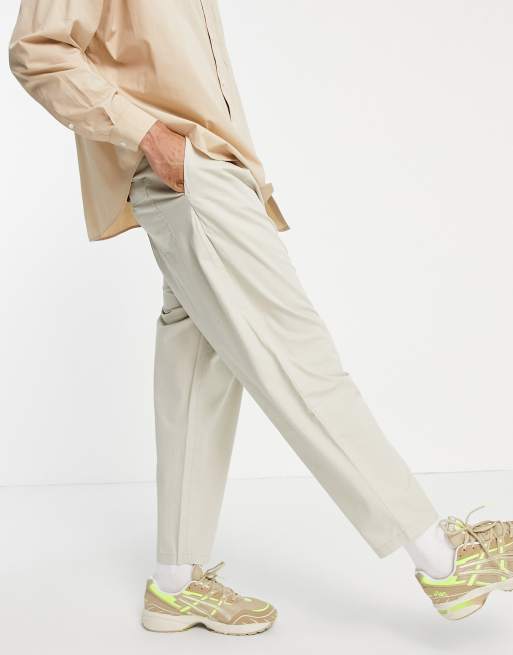 Bershka - Pantalon chino à pinces - Écru