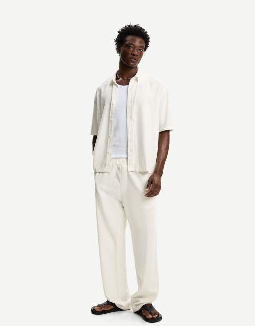 Bershka - Pantalon de jogging large en lin mélangé - Blanc