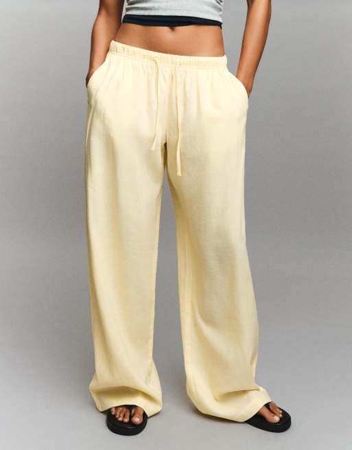 Bershka - Pantalon en lin majoritaire avec taille élastique - Jaune clair