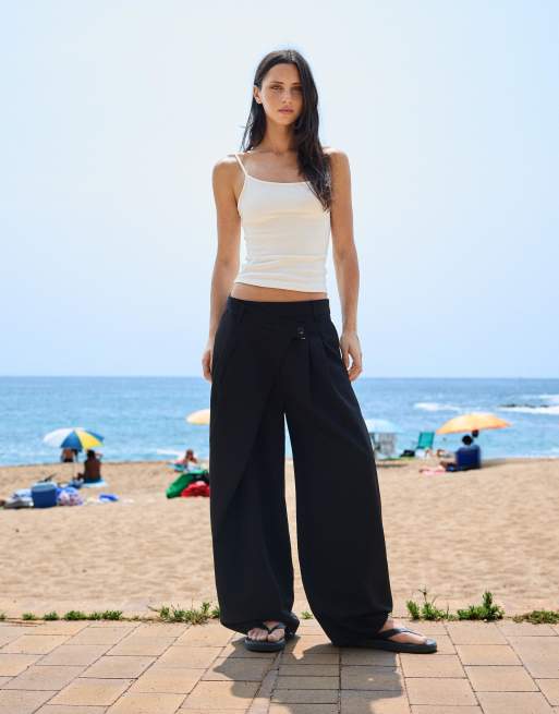 Bershka - Pantalon habillé à taille croisée - Noir