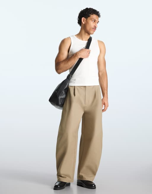 Bershka - Pantalon ultra bouffant en coton - Beige
