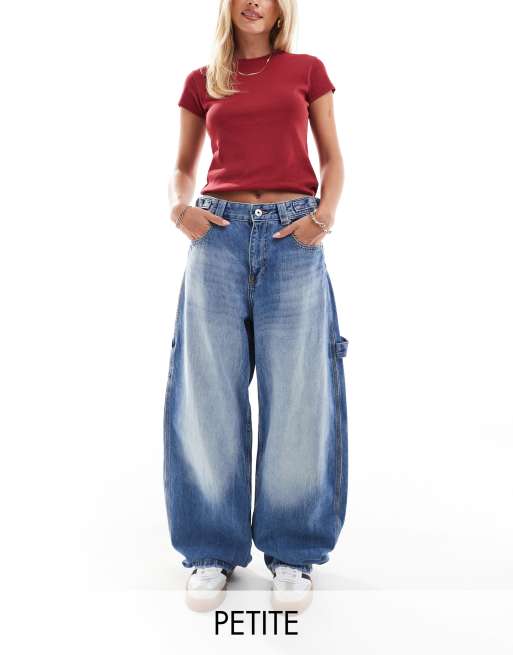 Bershka Petite - Jean charpentier avec taille réglable - Bleu clair délavé