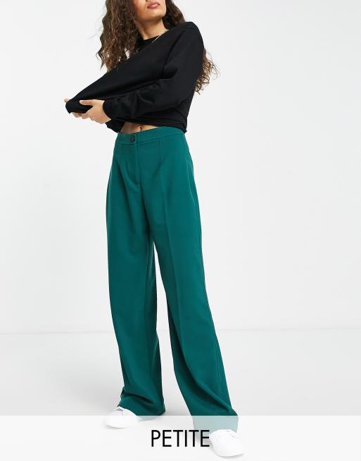 Bershka Petite - Pantalon large ajusté coupe dad - Vert foncé