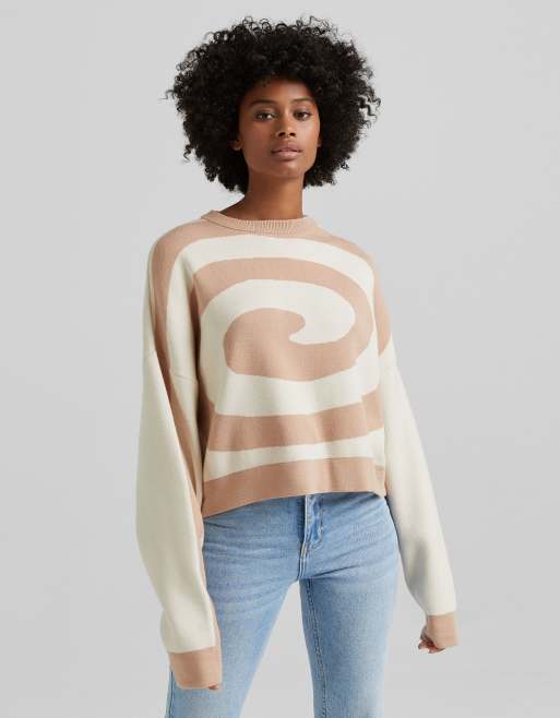 Bershka - Pull à imprimé tourbillon rétro - Beige