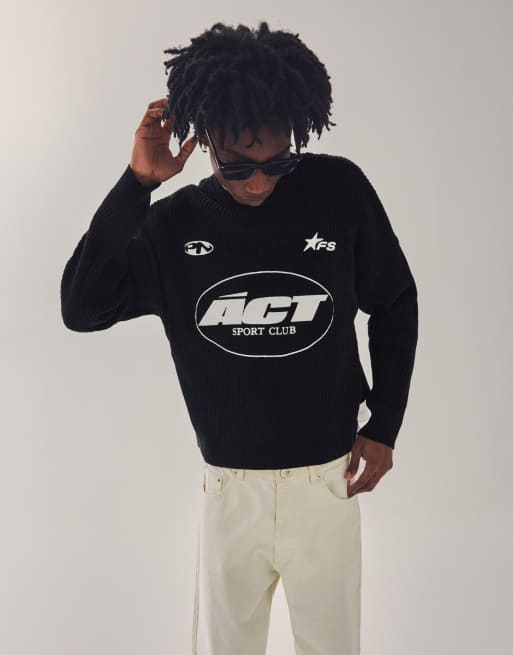 Bershka - Pull imprimé à col rond en maille chenille - Noir