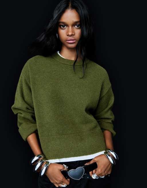 Bershka - Pull oversize à ourlet côtelé - Vert
