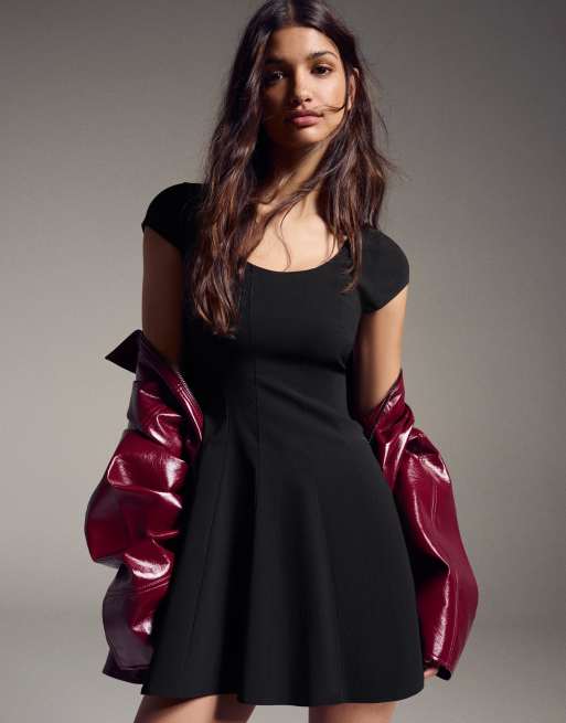 Bershka - Robe courte en bengaline avec jupe évasée - Noir